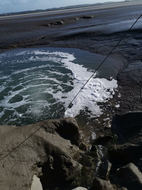 During recent tests near the Lydney Sewage Works outlet pipe into the Severn, FOFW members Adrian Lane and Paula Simpson found there to be "very high" levels of pollution present in the river, and reported seeing toiletry items "bouncing around in the water" as well as an abundance of strong smelling foam.