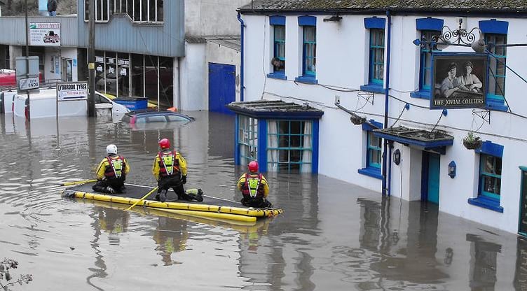 Floodwater swamped the village and the water rose so high it was lapping along the surface of the bar.