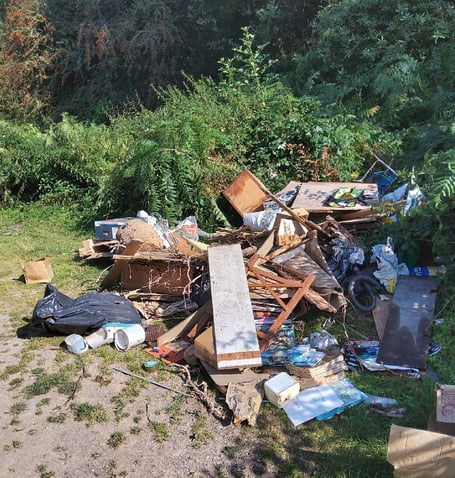 The large amount of rubbish that included wood, boxes containing books, garden trellis, tree cuttings and scrap metal, was fly-tipped on land near Oakwood Road in Bream in September 2021.