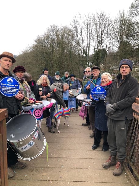 The activists mounted plaques along the Severn at Lydney Harbour and the Wye at Lydbrook, Monmouth, Redbrook and Brockweir, as well as on the window of Mark Harper’s office in Cinderford.