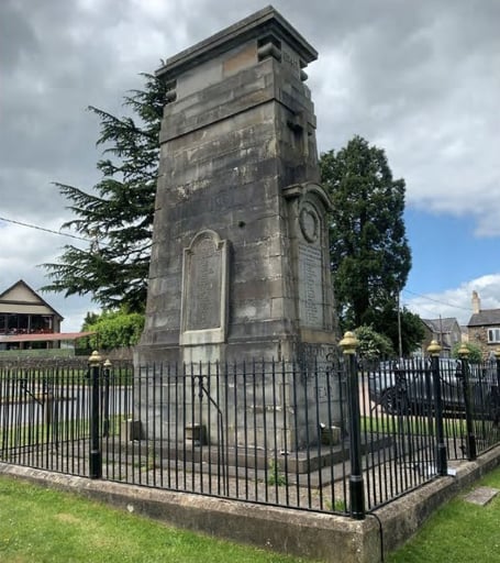 Sited on Sun Tump opposite the Rising Sun pub, it was constructed in local sandstone from the United Stone Quarry in Parkend and constructed by HJ Walker of Bream.
