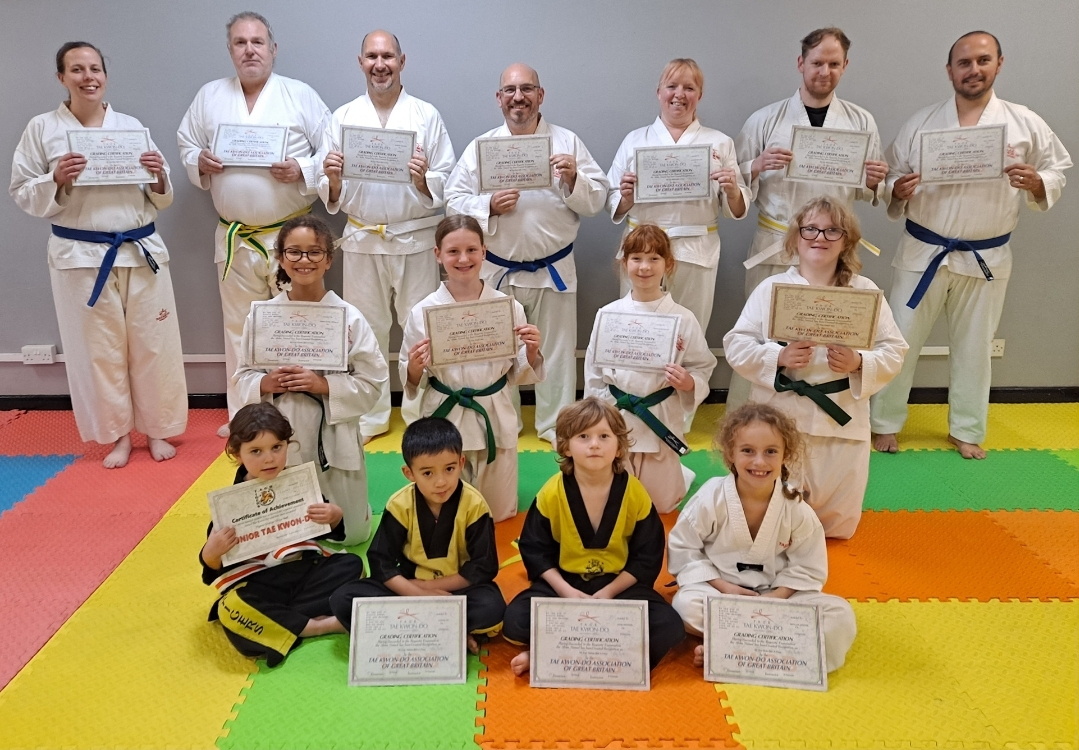 Cinderford Tae Kwon Do students Louise Bullen, Rob Bullen, and Carl Furley all achieved A passes in their first grading.